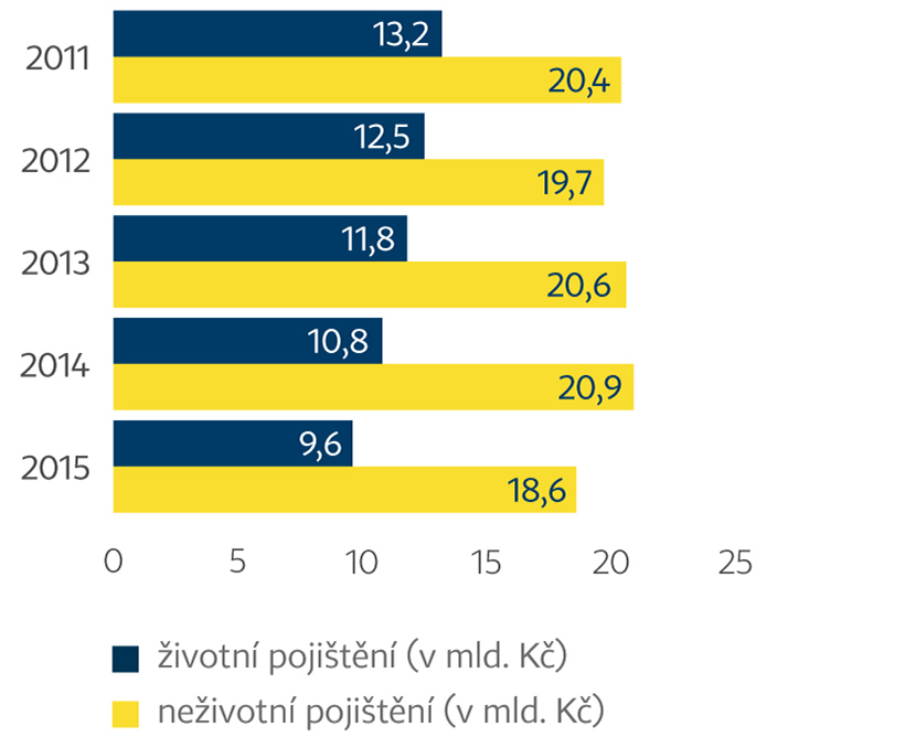 | – neživotní pojištění | mil. Kč | 9 169 | 10 358 | 11 320 | 10 431 | 11 353 |